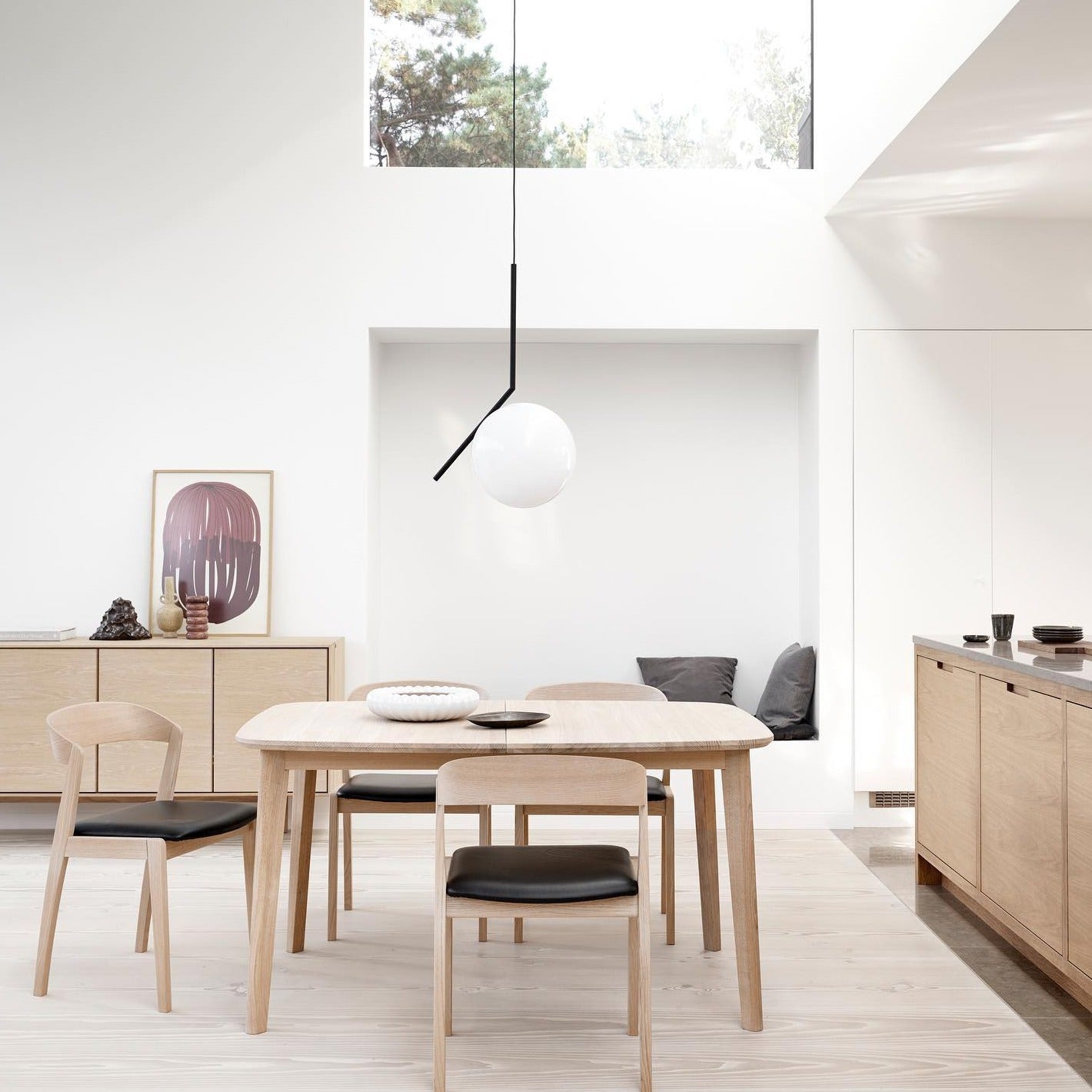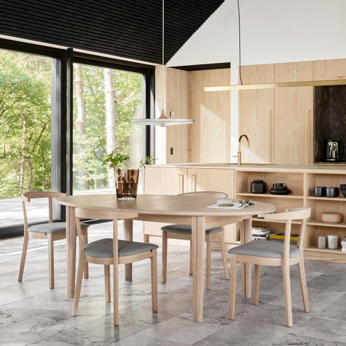 - Olíborin hvíttuð gegnheil eik m/leðri
